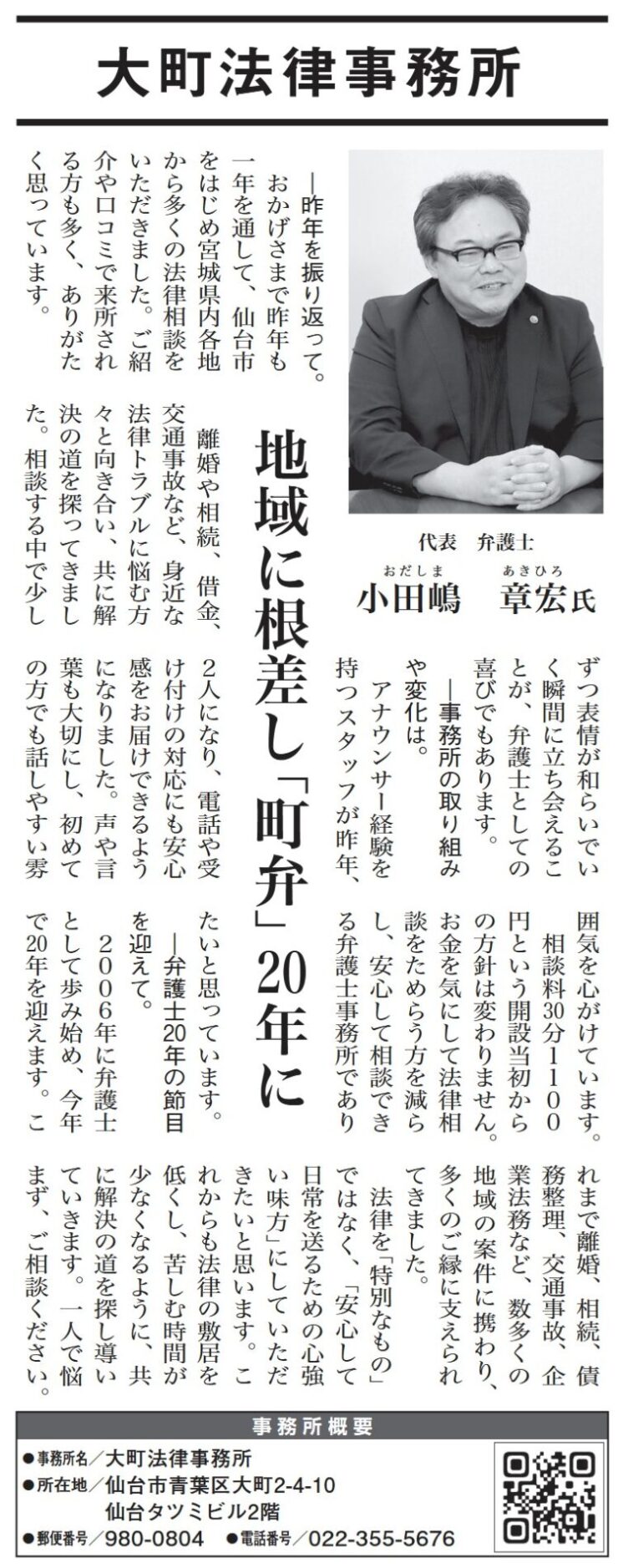 今年も河北新報社 新春トップインタビューに掲載されました。